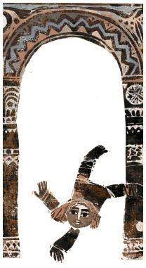 In seinem Gram flüchtete er eines Tages, als die Glocke zum Chorgebet rief, in eine abgelegene Kapelle. "Wenn ich schon nicht mitbeten kann im Konvent der Mönche", sagte er vor sich hin, "so will ich doch tun, was ich kann." Rasch streifte er das Mönchsgewand ab und stand da in seinem bunten Röckchen, in dem er als Gaukler umhergezogen war. Und während vom hohen Chor die Psalmgesänge herüberwehen, beginnt er mit Leib und Seele zu tanzen, vor- und rückwärts, links herum und rechts herum. Mal geht er auf seinen Händen durch die Kapelle, mal überschlägt er sich in der Luft und springt die kühnsten Tänze, um Gott zu loben. Wie lange auch das Chorgebet der Mönche dauert, er tanzt ununterbrochen, bis ihm der Atem verschlägt und die Glieder ihren Dienst versagen.